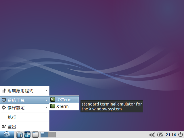 至於其它的東西就打開 XTerm 再用 apt 程式來一個一個安裝上去就好了,相當清爽又簡潔,還沒有再安裝其它東西之前總共使用空間約 1.7 G。